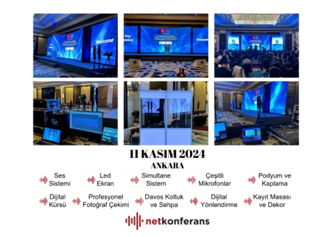 11 KASIM 2024 ANKARA Ses Led S�multane Çeş�tl� Podyum ve S�stem� Ekran S�stem M�krofonlar Kaplama D�j�tal Profesyonel Davos Koltuk D�j�tal Kayıt Masası Kürsü Fotoğraf Çek�m� ve Sehpa Yönlend�rme ve Dekor
