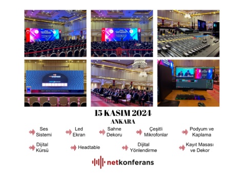 15 KASIM 2024 ANKARA Ses Led Sahne Çeş�tl� Podyum ve S�stem� Ekran Dekoru M�krofonlar Kaplama D�j�tal D�j�tal Kayıt Masası Kürsü Headtable Yönlend�rme ve Dekor